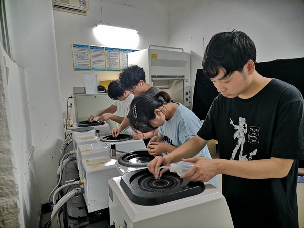 7月10日下午,太阳成集团tyc234cc经理王绍明、分党委书记唐传球、经理助理欧修龙、实验中心主任刘锋等前往明理楼实验室看望、慰问暑期留校备战学科竞赛各团队的师生。