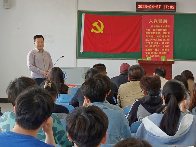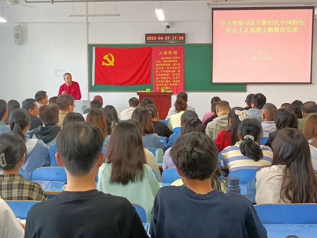 4月27日下午在崇文楼A706,校领导章平同志参加太阳成集团tyc234cc支部主题党日活动,并为全院教职工、员工党员、入党积极分子开展《理论武装、指导实践、推动工作——深刻领会党的二十大主题》的专题党课。