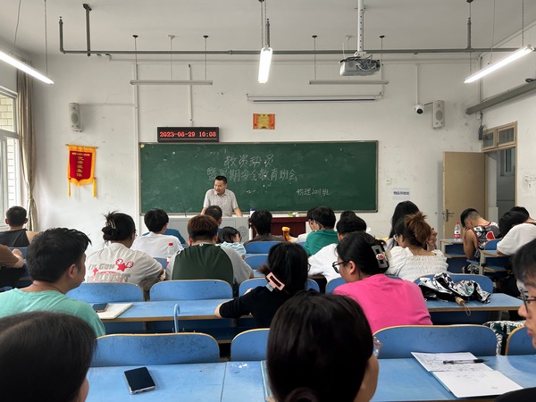 辅导员李朦着重强调了暑期的安全问题,提醒同学们在任何时刻都要注意人身安全和财产安全,并就用电安全、防溺水、防交通事故、防电信诈骗等内容等做了详细的介绍。